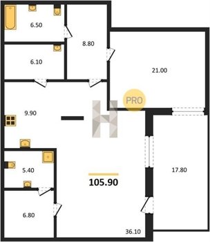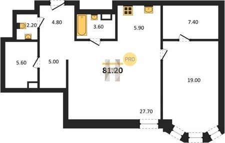 Площадь от 50.8 м2